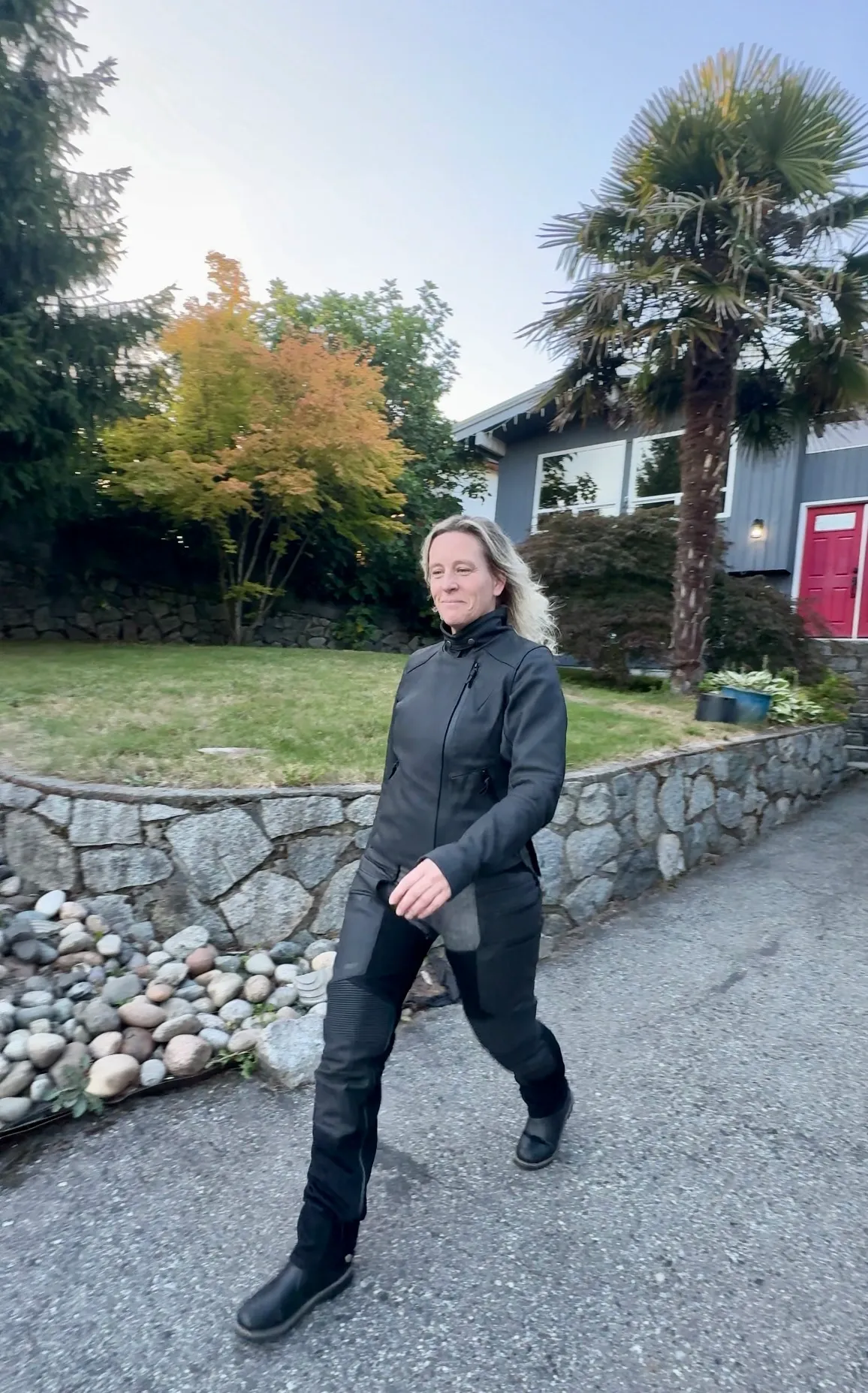 “Impressive,” said one of my friends. “Most jackets do not make a woman’s figure look like a woman on a bike. This gear works.”